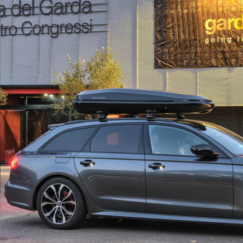 Il baule universale da tetto rigido Diamond 500 di Menabò è la soluzione ideale per chi ha bisogno di spazio e necessita di portare con sé una discreta mole di bagagli. Diamond 500 è un baule da tetto di alta gamma realizzato in Italia con materiali di prima qualità, progettato con un profilo affusolato ed estremamente aerodinamico per minimizzare la resistenza all’aria e ridurre il consumo di carburante. Il design e le finiture lo rendono un box da tetto elegante e sportivo allo stesso tempo ed è compatibile con la maggior parte delle barre da tetto. Realizzato in ABS, è in grado di resistere ai raggi UV, alle intemperie e ad ogni condizione climatica, con una struttura che agevola il carico dei bagagli dalla parte laterale del veicolo e che distribuisce il peso in modo uniforme ed equilibrato. Montato sul tetto del veicolo è perfetto per le famiglie che devono trasportare un gran numero di oggetti che il comune bagagliaio dell’auto non riesce a contenere, come borse, valigie, zaini, passeggini, tende da campeggio, attrezzatura da sub o per lo sci fino ad un massimo di 75 kg.