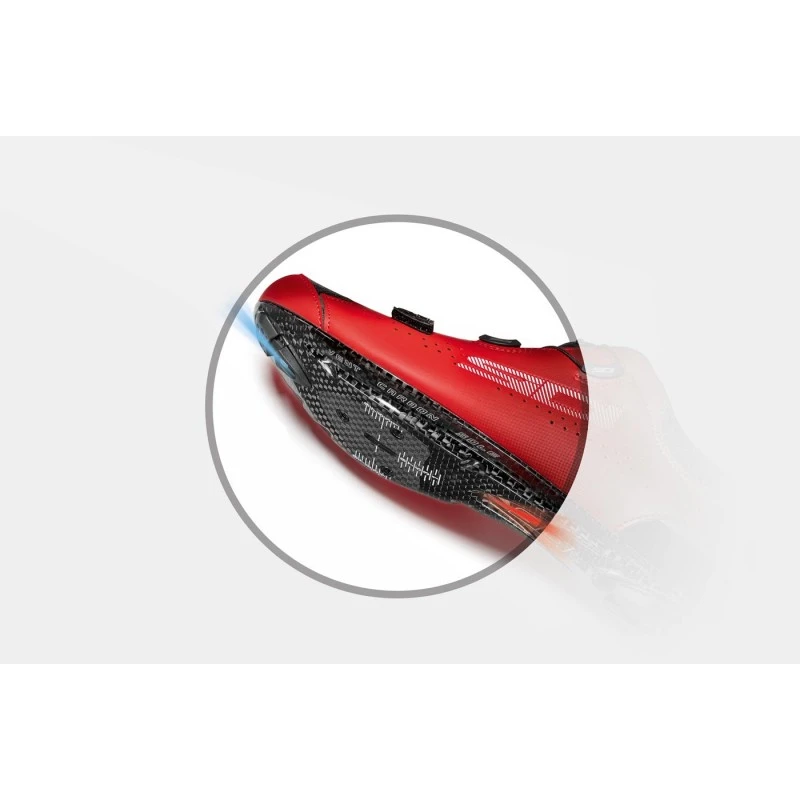 I vantaggi chiave della suola VENT CARBON non sono solamente un maggior trasferimento di potenza, grazie alla sua leggerezza e rigidità, ma anche un maggior comfort in caso di elevate temperature.